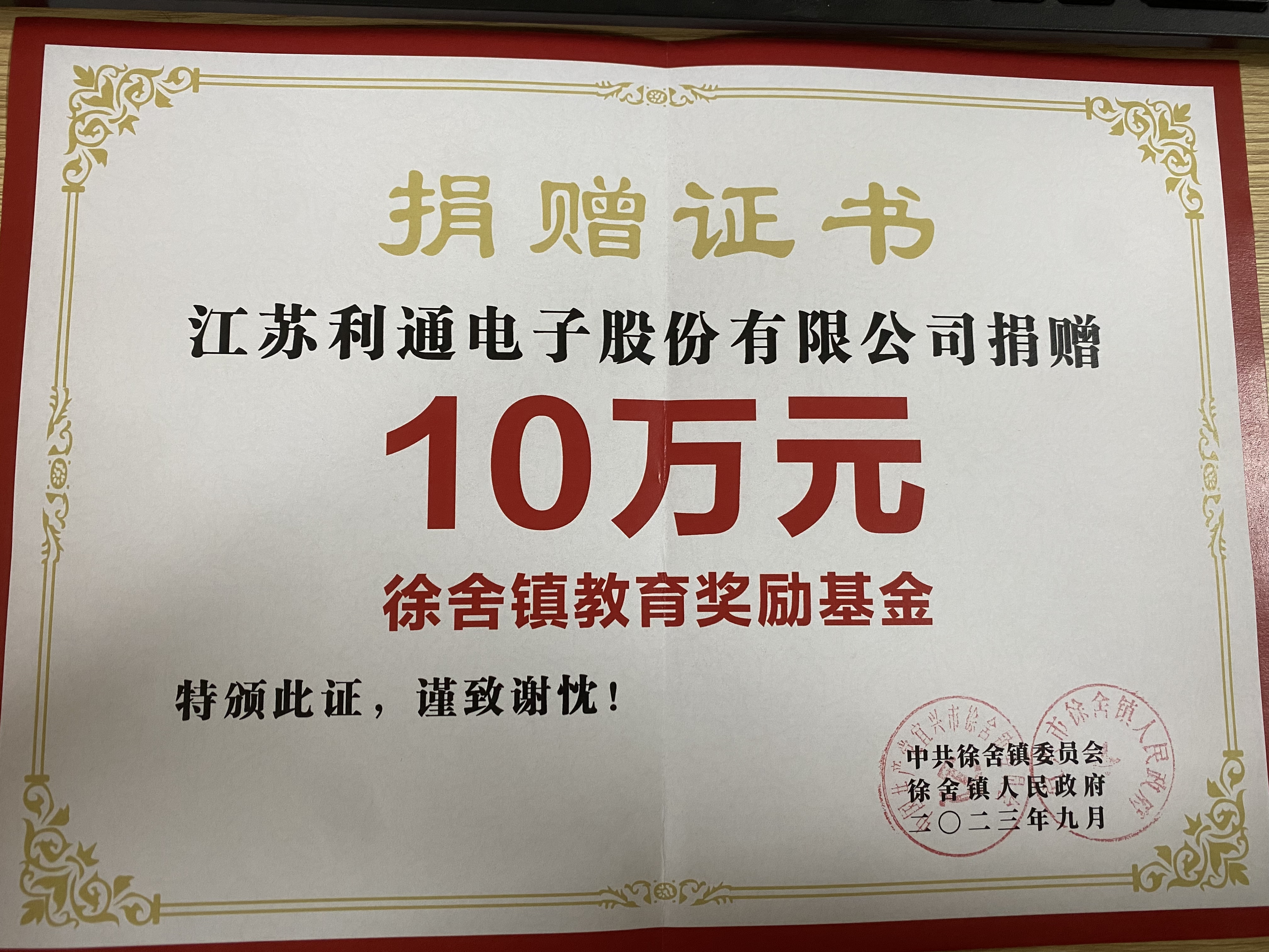 多年來(lái),利通電子堅(jiān)持慈善捐贈(zèng),助力徐舍鎮(zhèn)教育事業(yè)發(fā)展,同時(shí)全力幫助外地員工解決落戶和子女入學(xué)問題,彰顯了我司作為本土企業(yè)的鄉(xiāng)土情懷和上市公司的責(zé)任擔(dān)當(dāng)。