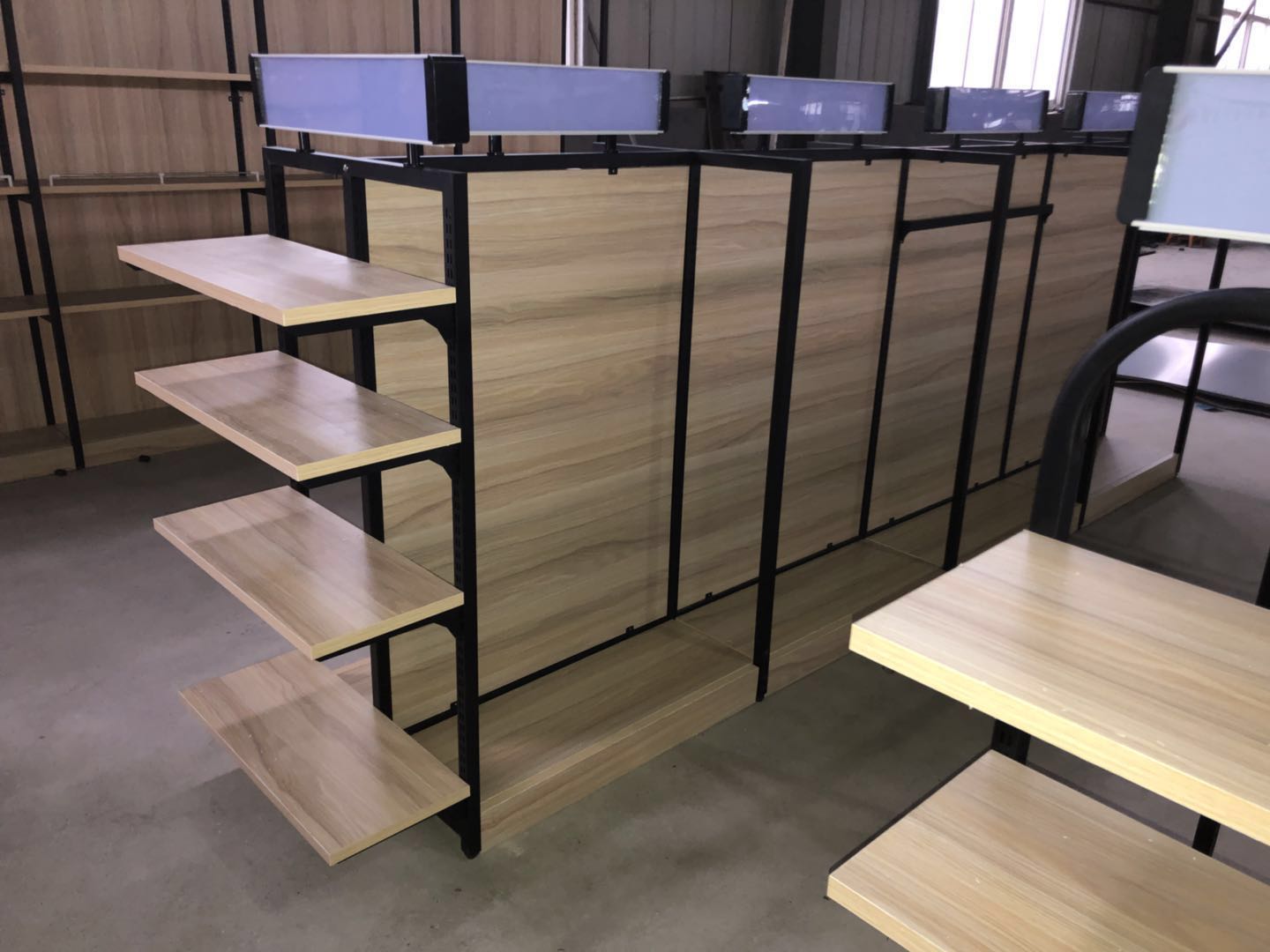 產品小介 :鋼木結合原木色貨架三要素:鋼木結合貨架要時尚,要實用,要打造出自己的風格。貨架主要應用與,進口食品展示,精品貨架展示系列.新款鋼木結合貨架等采用E1級免漆環保板材,本產品采用鍍鋅鋼管烤漆制作,板材為環保實木顆粒板,防水耐臟.層板、立柱,背板、底板 (側板燈箱等可根據您的需求另定制),層板上下、傾斜度可調節,設計人性化,承重好,屬通用型貨架。