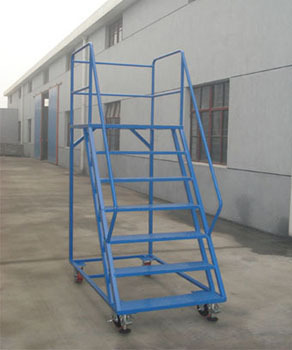 登高車是倉儲物流中使用的一種登高作業設備,類似于登高扶梯的作用。可方便人員站在車平臺上實現存取貨物等作業行為。登高車的一面設有臺階(臺階旁邊有扶手)供使用者登上平臺,平臺另三面配有護欄保證作業者。平臺作業面一般大小可容納1-2人站立、轉身、移動。使用者可在登高車的平臺上完成從貨架等高