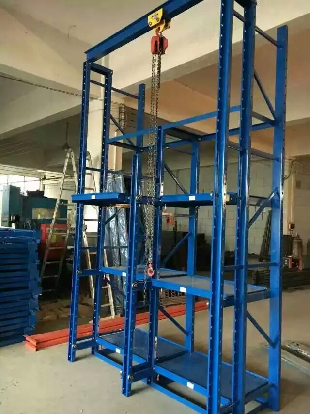 模具貨架又稱模具架或抽屜式貨架,主要存放各種模具物品,根據層載能力要求分為輕型模具貨架和重型模具貨架。貨架頂部可配置移動葫蘆車,以方便模具的起吊。