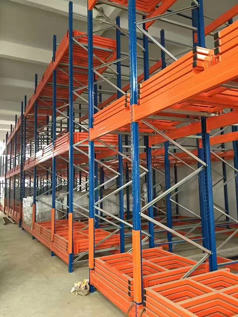 1)推入式貨架是由托盤小車等典型結構件組成,托盤車具有可流動特性,貨物被規定于貨架的一端進出,并遵循先進后出順序。