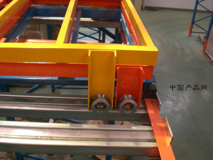 1)推入式貨架是由托盤小車等典型結(jié)構(gòu)件組成,托盤車具有可流動特性,貨物被規(guī)定于貨架的一端進出,并遵循先進后出順序。